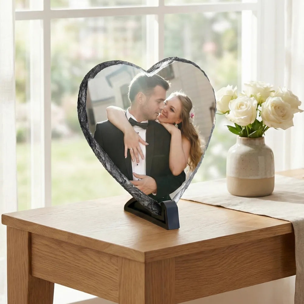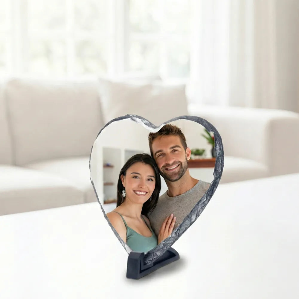 Istället för en present som glöms bort – ge din älskling en hjärtformad fotosten i äkta skiffer som bevarar ert finaste minne för evigt. Det är den perfekta presenten till din pojkvän eller flickvän som visar att er kärlek är huggen i sten.