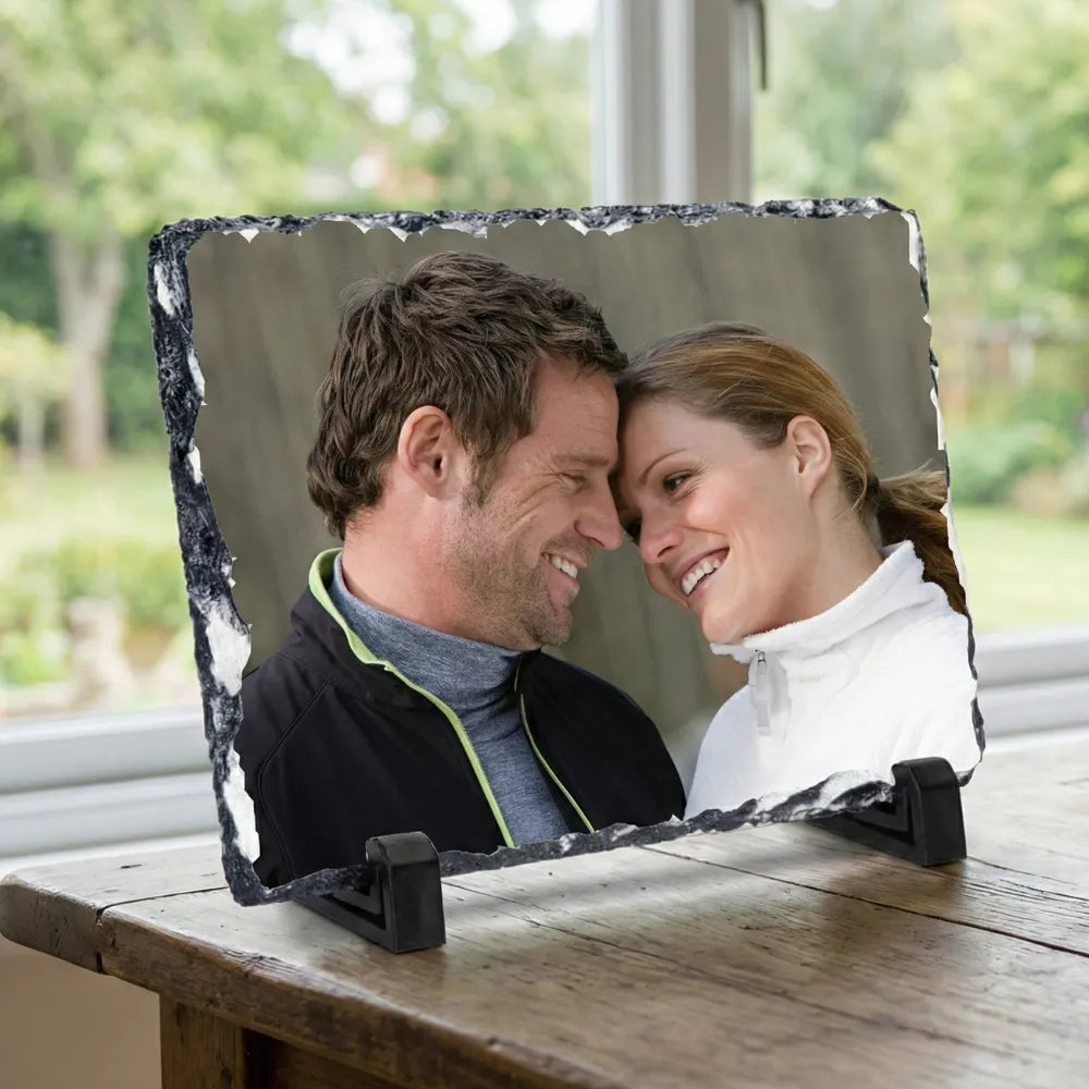 Istället för en vanlig tavla – ge din älskling en personlig skifferplatta med ert favoritfoto. Det är den perfekta presenten till din pojkvän eller flickvän som visar att er kärlek är lika stark och hållbar som sten.